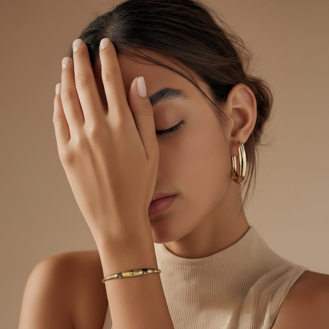 Ajoutez une touche d’élégance authentique à votre style avec ce bracelet jonc en cuivre naturel, entièrement fait main par des artisans qualifiés. Son design minimaliste et ses motifs martelés lui donnent un caractère unique, à la fois raffiné, ethnique et intemporel, adapté aussi bien aux hommes qu’aux femmes.
